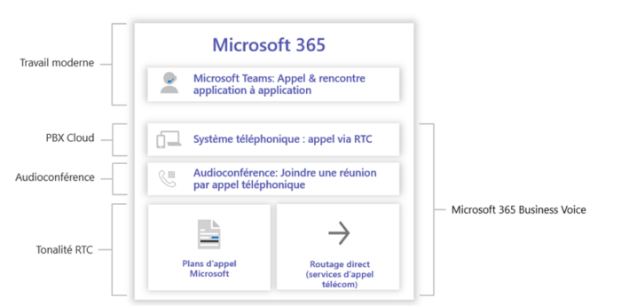 - L’abonnement Microsoft 365 Business Voice (avec forfait d’appels)