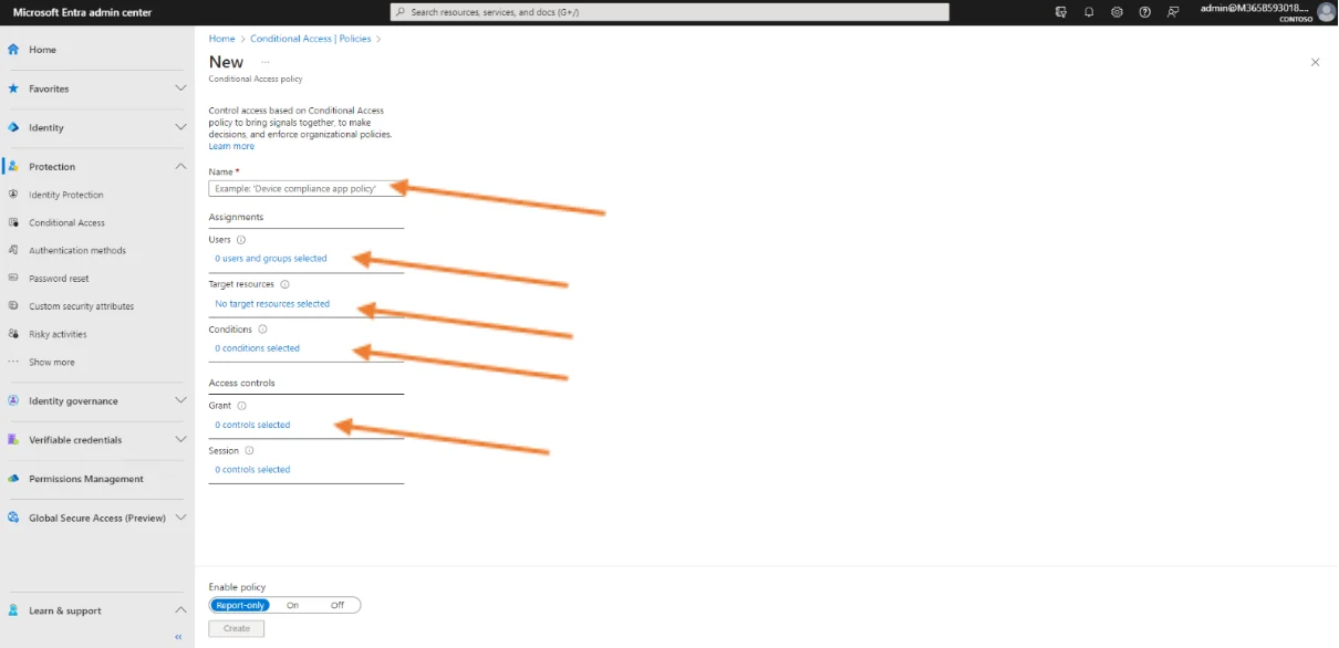 In this conditional access policy management window, the following sections are those of interest to achieve the expected result.