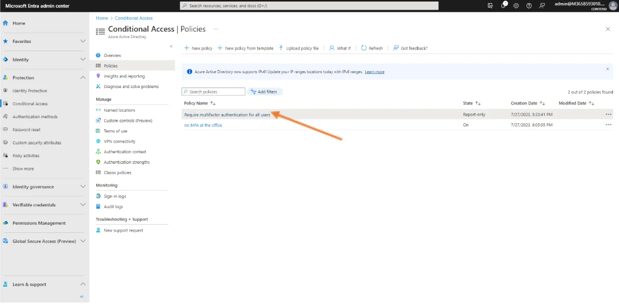As the example has demonstrated, in certain cases, the use of conditional access policies allows you to soften the requirements related to multi-factor authentication.