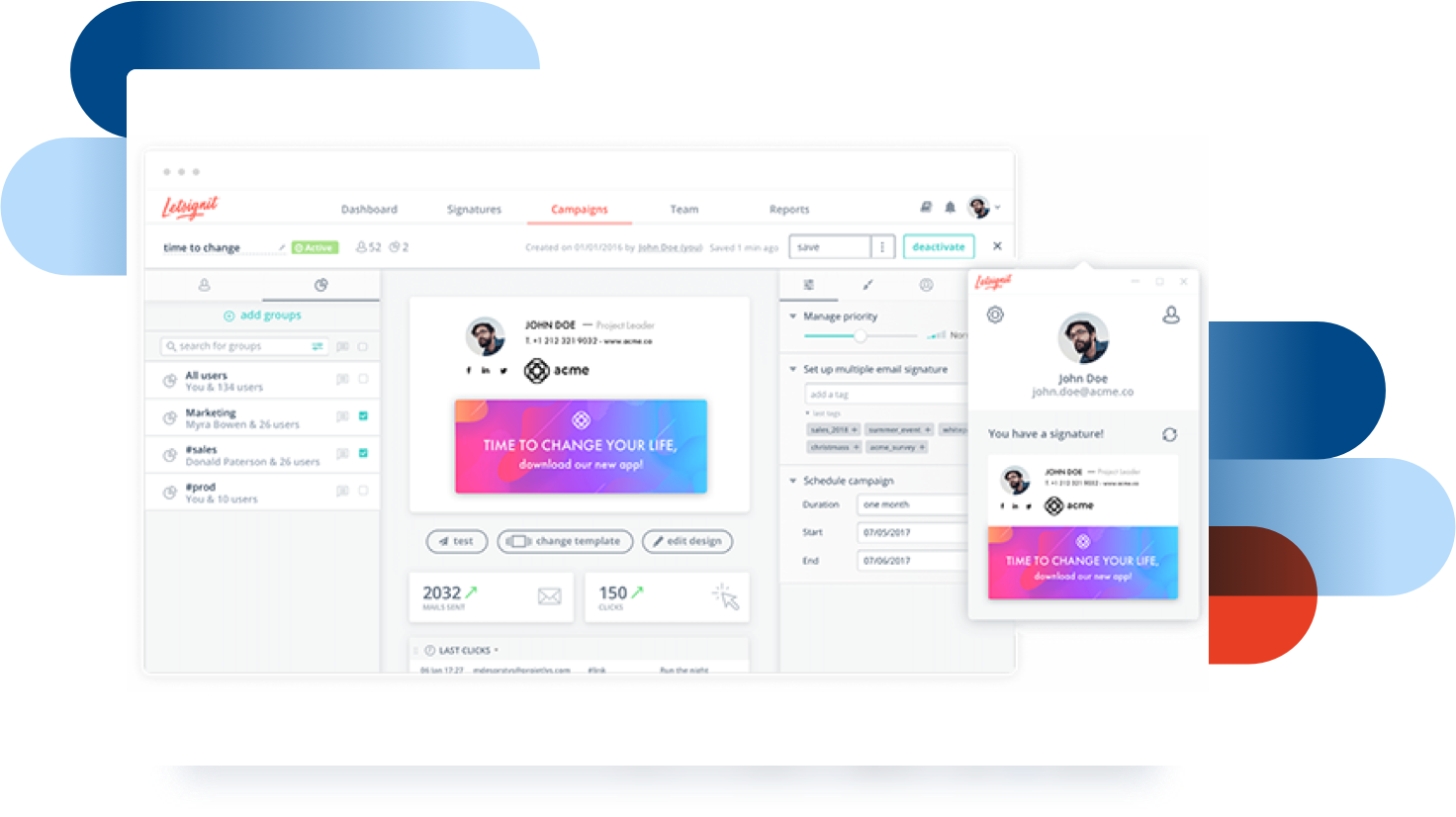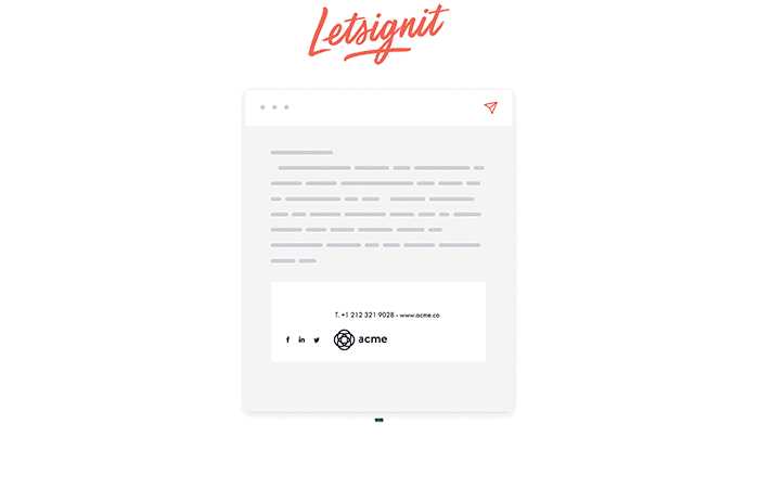 Plateforme cloud de création et de gestion incroyablement simple, Letsignit aide l’entreprise à reprendre le contrôle de son identité digitale en harmonisant chaque signature en quelques clics. Avec Letsignit, chaque courriel se voit transformé en puissante opportunité de communication : adressez le bon message, à la bonne personne, au bon moment !