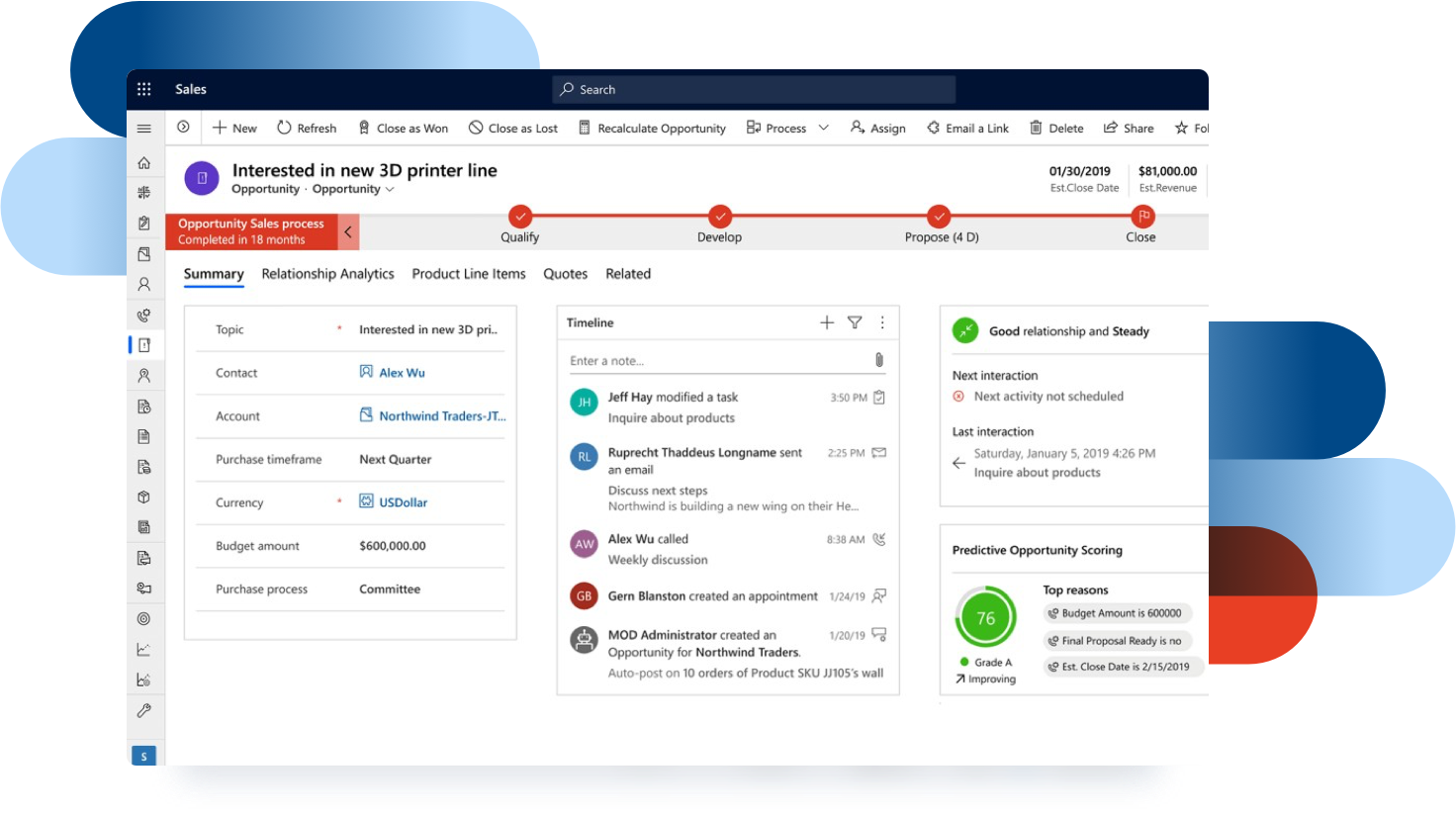 Couvrez les besoins de productivité, l’analytique et la gestion des ressources et des clients dans un environnement sécure, fiable et complètement intégré à Microsoft 365. Microsoft Dynamics 365 contient des applications intégrées telles que; Ventes, Marketing, Service Client, Gestion de Projet, Service de Terrain, Finances, Opérations, Vente au détail & Ressources Humaines.